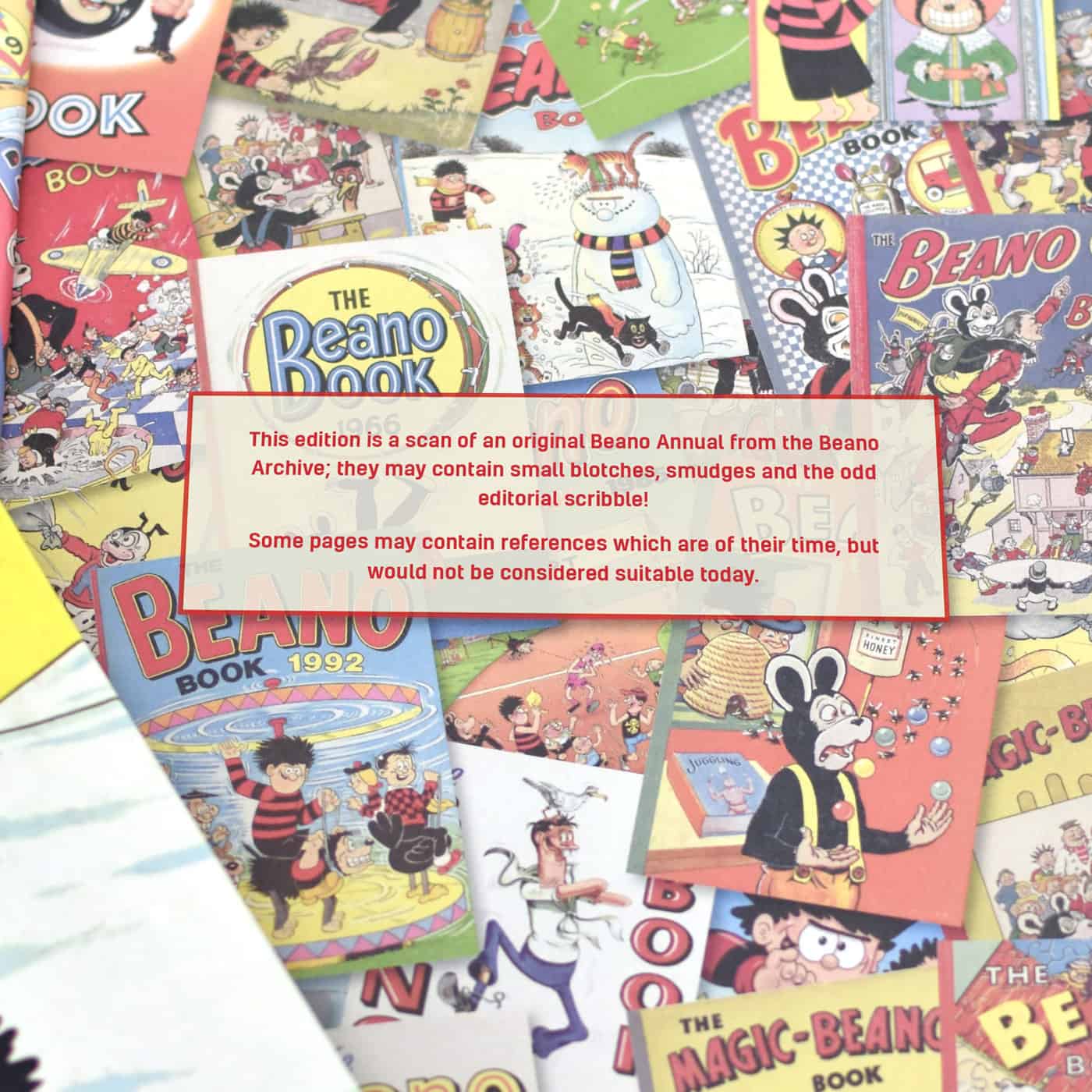 These editions are scans of the original Beano Annuals from the Beano Archive; they may contain small blotches, smudges and the odd archivist scribble.