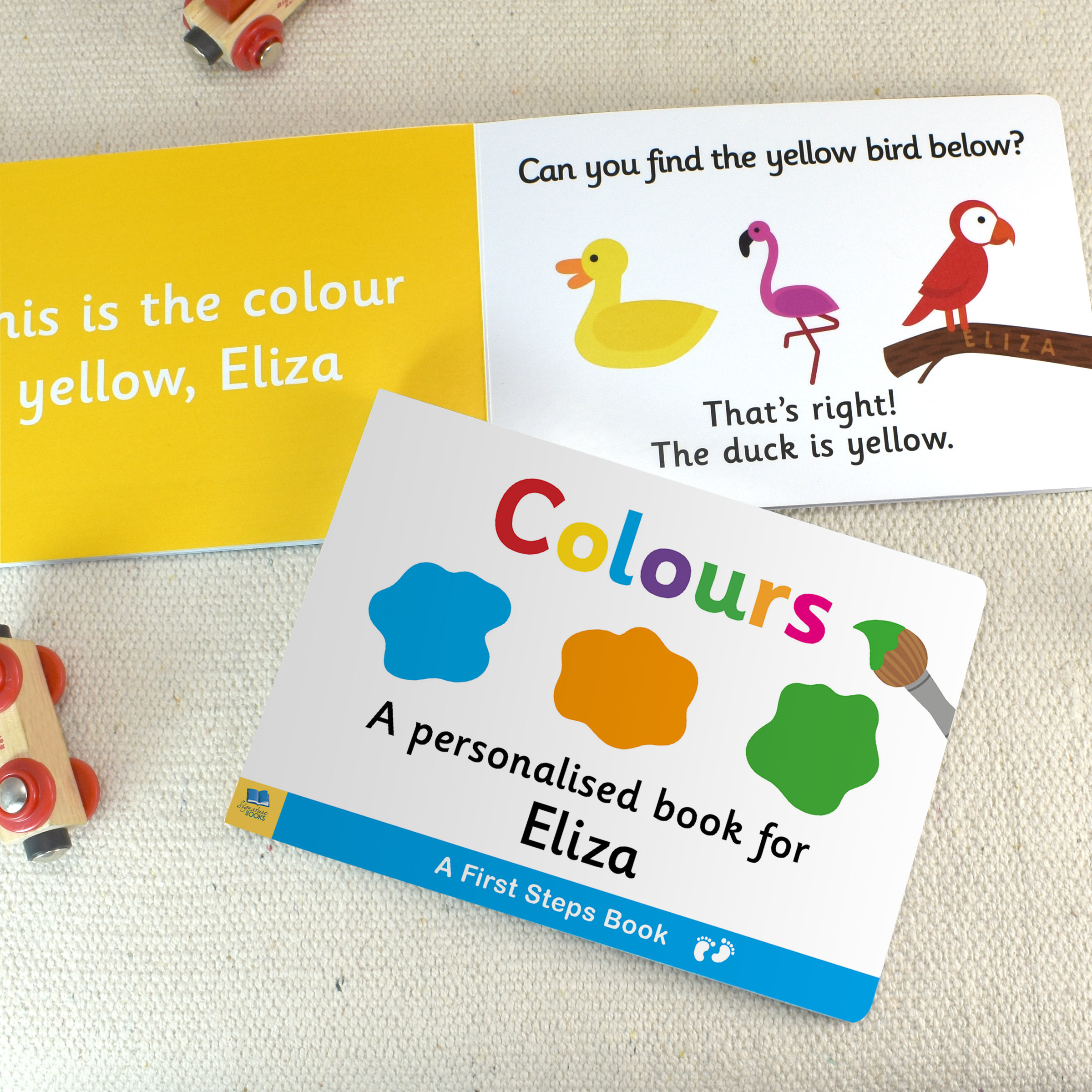 This bright book will help your toddler recognise colours, and has their name throughout