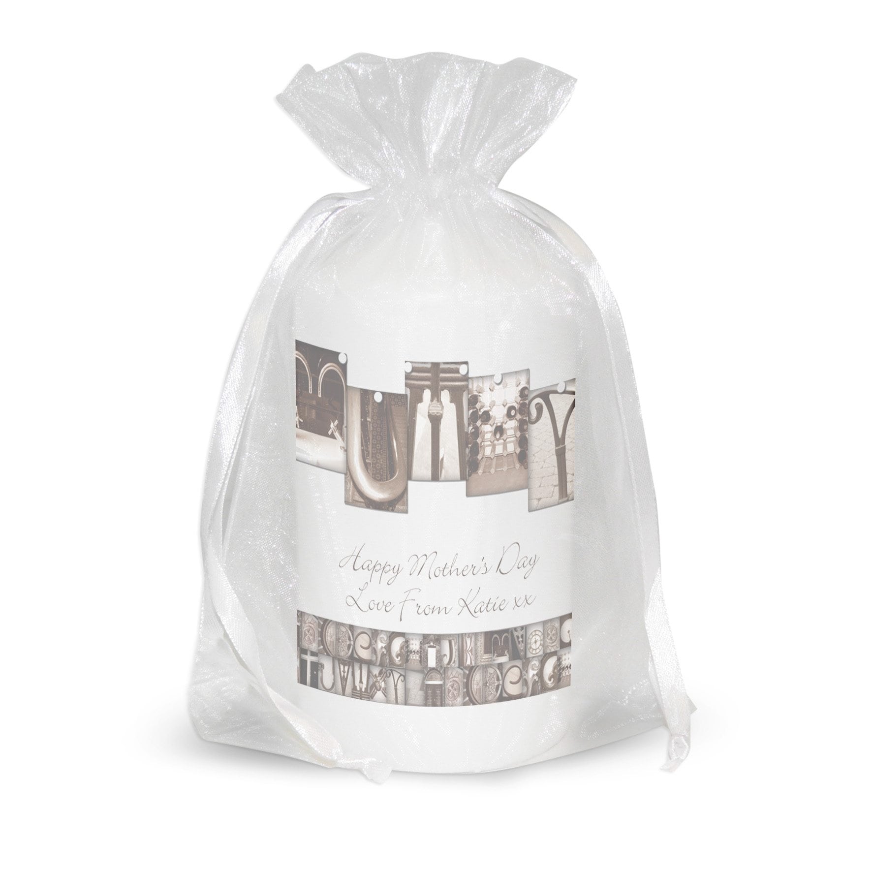 The image is made up of different architectural images to display the word Mummy. Add a special message to the candle over 2 lines and up to 25 characters per line.Due to the nature of this product and the font type used please refrain from using all capitals in your personalised message. If the message is all in capitals you will find the personalisation extremely difficult to understand and may even result in personalisation being missed off the product. Many thanks for your cooperation.Happy Anniversary Mum & Dad – AcceptableHAPPY ANNIVERSARY MUM & DAD- Not acceptableCandle is presented in organza bag.Approximately 58 hours burn time.