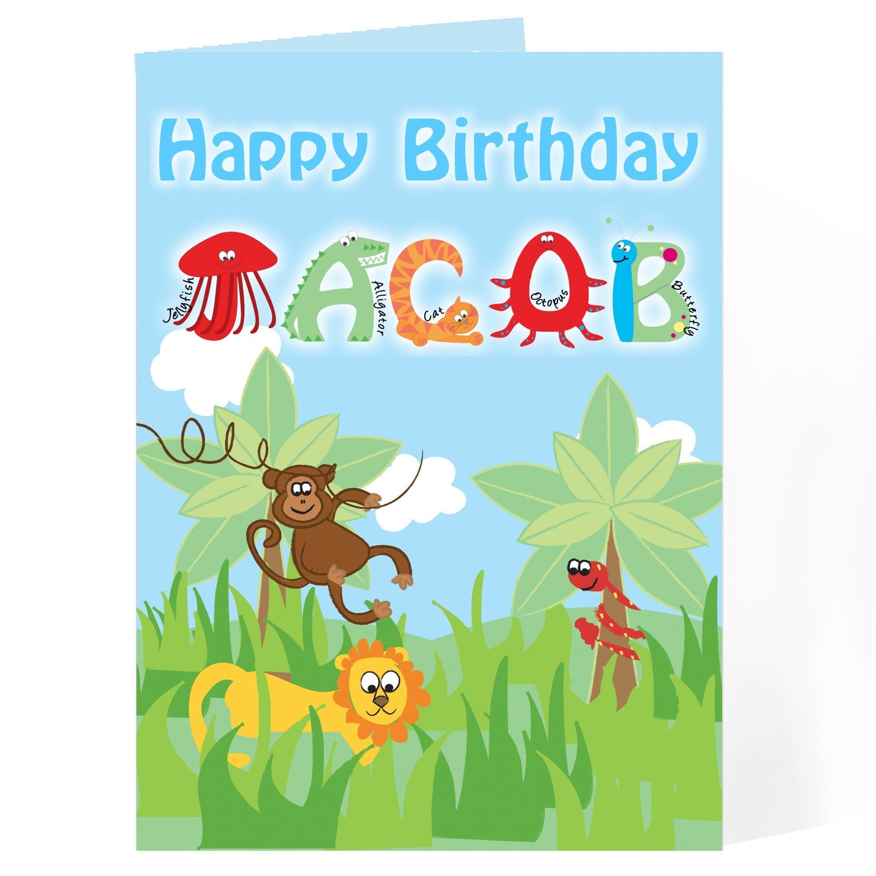 Personalised Blue Animal Alphabet Card