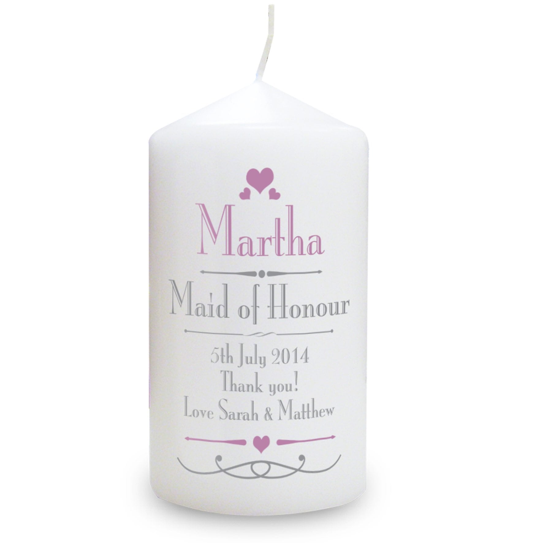 Personalise this Decorative Wedding Candle with a name up to 15 characters, a role up to 20 characters and a message over 3 lines of up to 20 characters each.