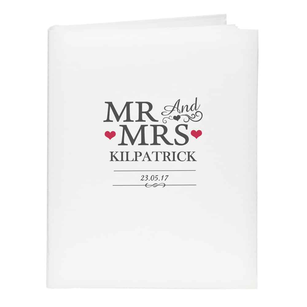 This Mr And Mrs Album with Sleeves can be personalised with a surname up to 15 characters and a date up to 20 characters
