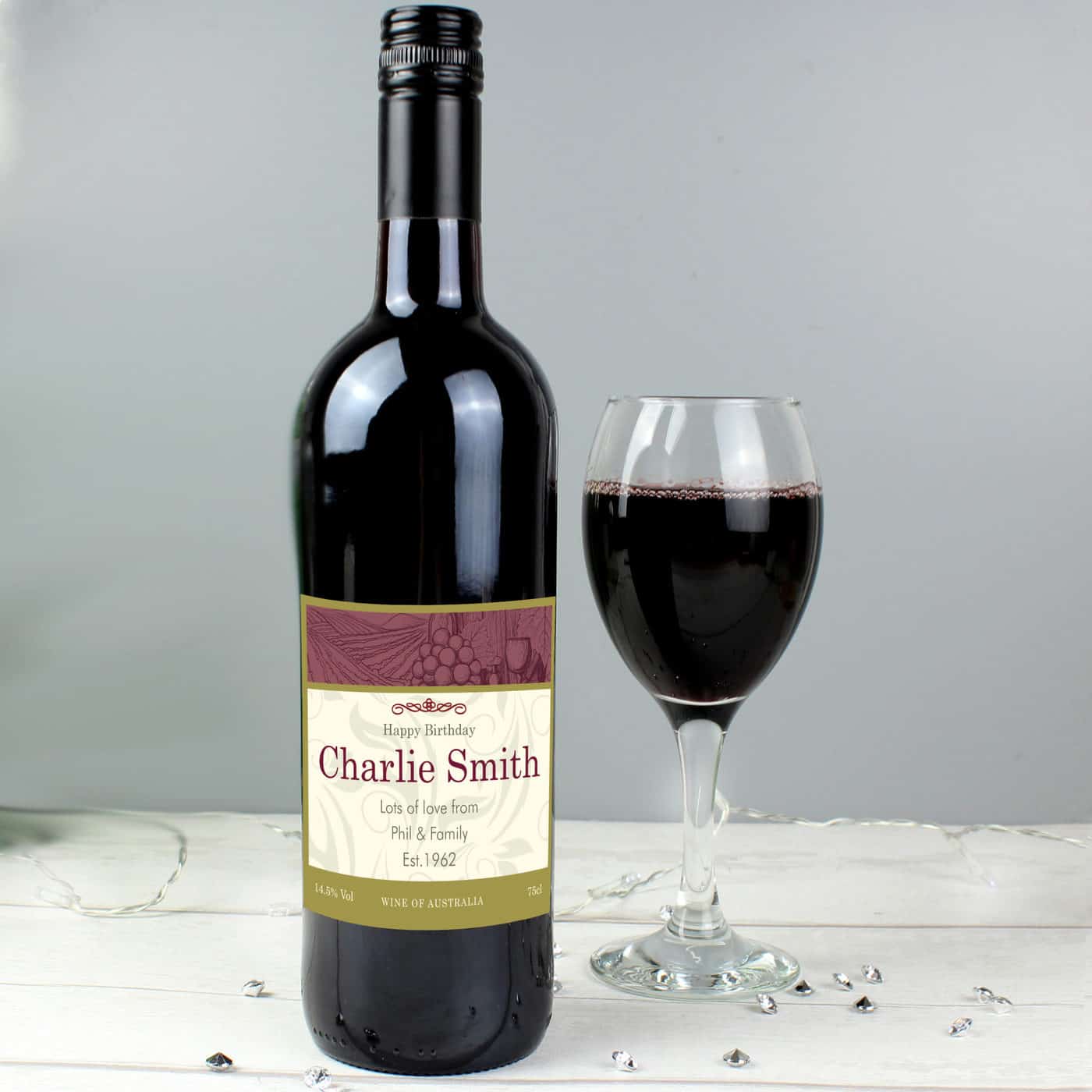 Personalise this Red Wine with a line at the top and a name up to 20 characters per line. You can then add a message across 3 lines up to 30 characters per line. All personalisation is case sensitive and will appear as entered.