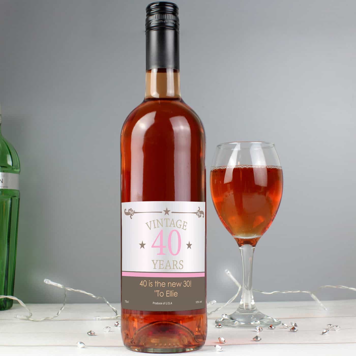 Personalise this Vintage Years Rose Wine with a number of years, up to 2 digits, and a message over two lines of 30 characters.