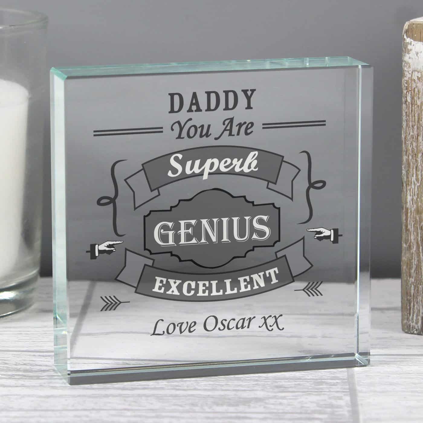 You can personalise this crystal block with a name up to 12 characters long, which will appear at the top in upper case. You can then add a line of up to 20 characters at the bottom.