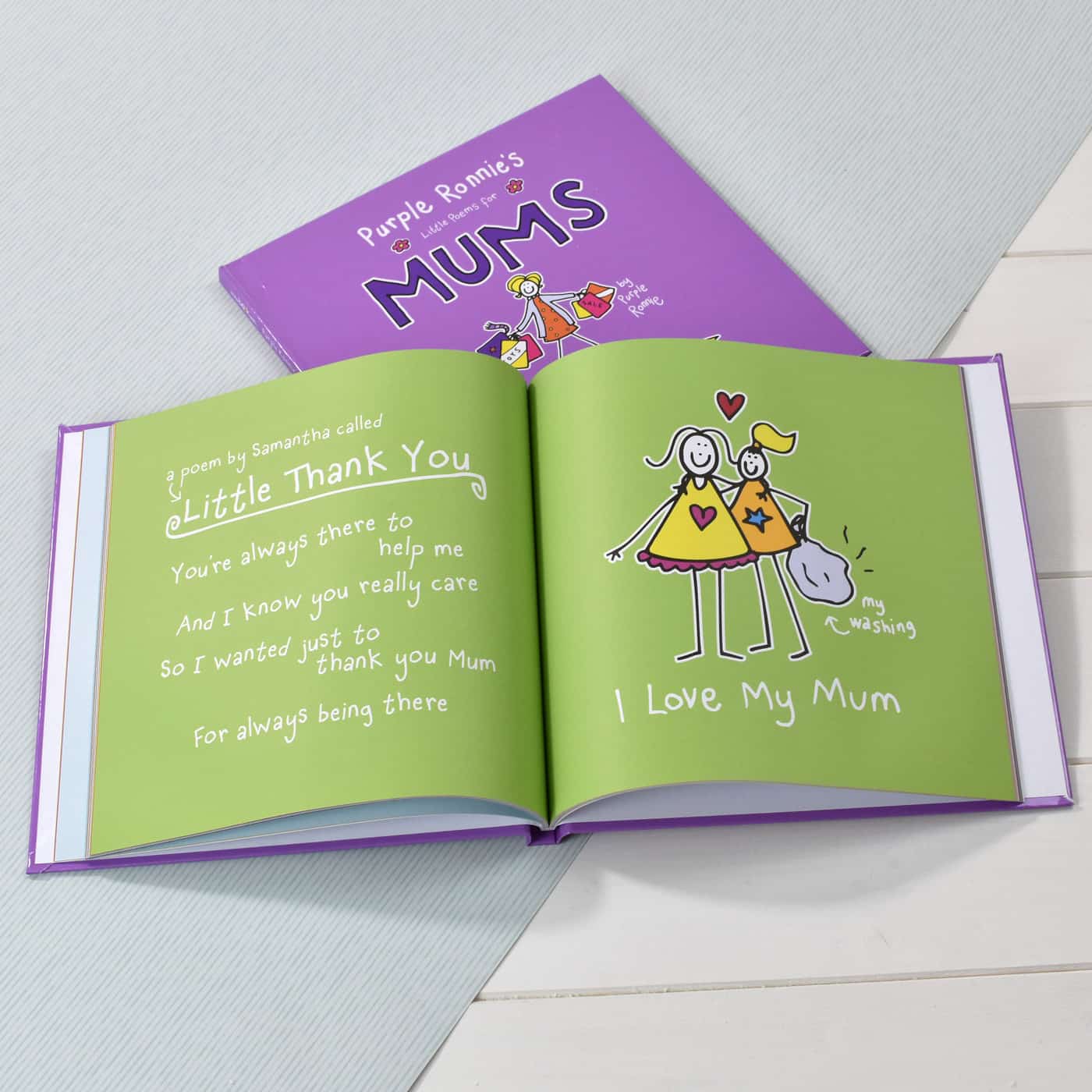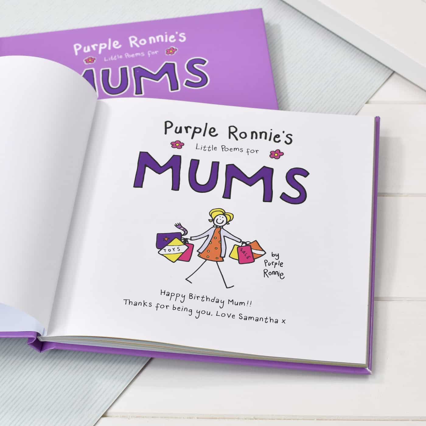 Mum’s are great, aren’t they? From hugs to brighten your day, to cooking your favourite dinner, mums make your world special long after you’ve grown up and flown the nest. This beautifully designed Purple Ronnie book is the perfect way to say thanks to mum. It is filled with a host of complimentary poems featuring illustrations of the iconic Purple Ronnie characters who bring their own brand of cheekiness and fun to each page. Better still, each poem features your name, so mum knows exactly who is singing her praises! Your name will also appear on the front cover, and you can add a personal message to the opening page, making this book a great gift for mum on any occasion.
