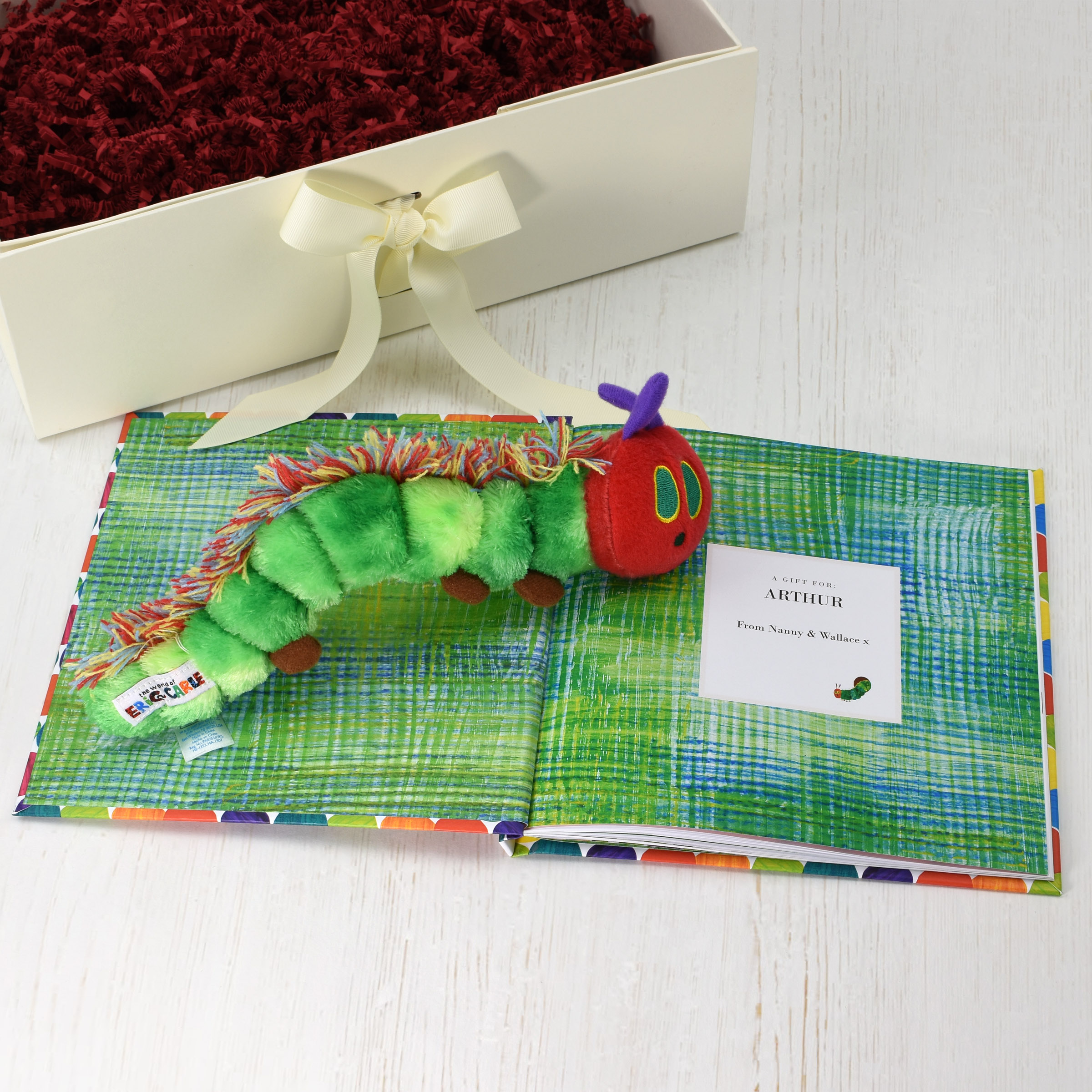 A personalised adaptation of Eric Carle’s classic, complete with plush toy and gift box.
